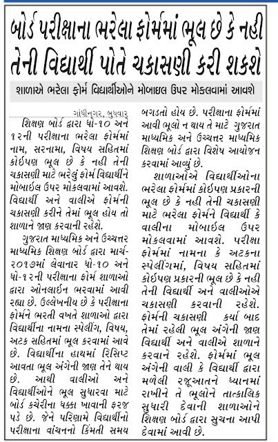 Good News:- Board parixa Na Form Ma Bhul Chhe Ke Nhi Teni Vidhyarthio Jate Tapas Karshe.